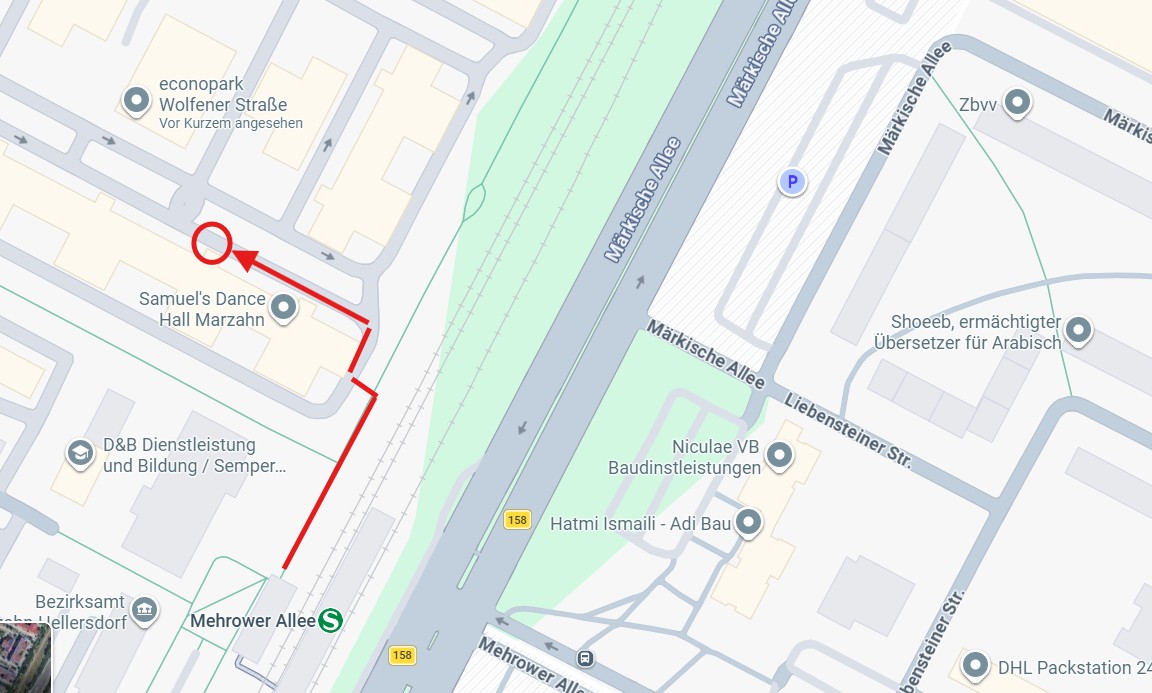 Um auf das Gelände zu gelangen, folgt bitte dem Weg, der parallel zu den S-Bahn-Gleisen verläuft. Durch das kleine Tor gelangt ihr zum Haus D.