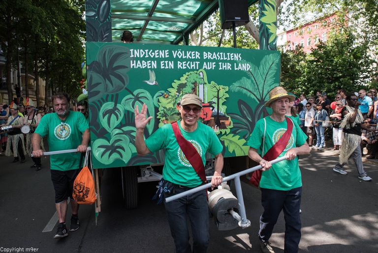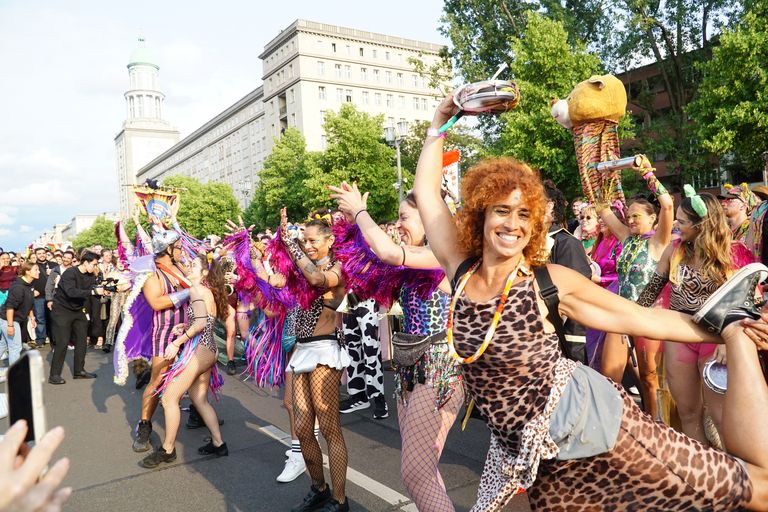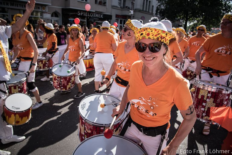 Sapucaiu No Samba haben nicht nur mit ihrer Musik, sondern auch mit ihren beeindruckenden Kostümen überzeugt und den brasilianischen Samba auf überwältigende Weise auf den Berliner Asphalt gebracht.