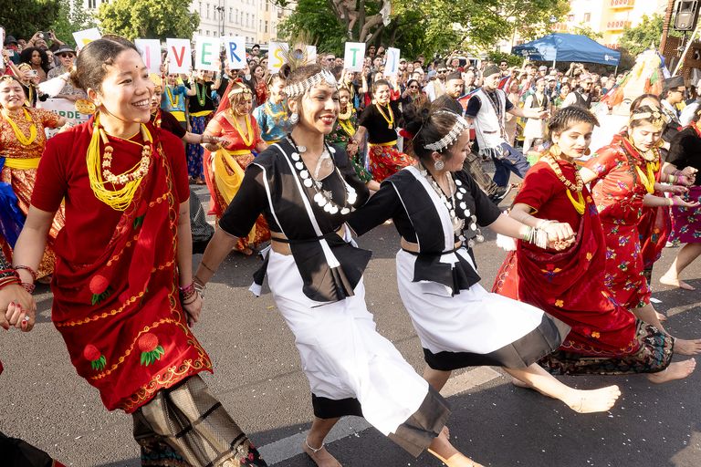 Mehr als 250 Menschen, die generationsübergreifend auf den Punkt sehr viel Energie versprühten, so dass nicht nur wir von der Jury für viel mehr als 90 Sekunden dachten, wir wären nicht in Berlin Kreuzberg, sondern auf den Straßen Boliviens. Ein Meer aus bunten Kostümen, Menschen, Liebe und Heimatgefühlen wogte um uns.